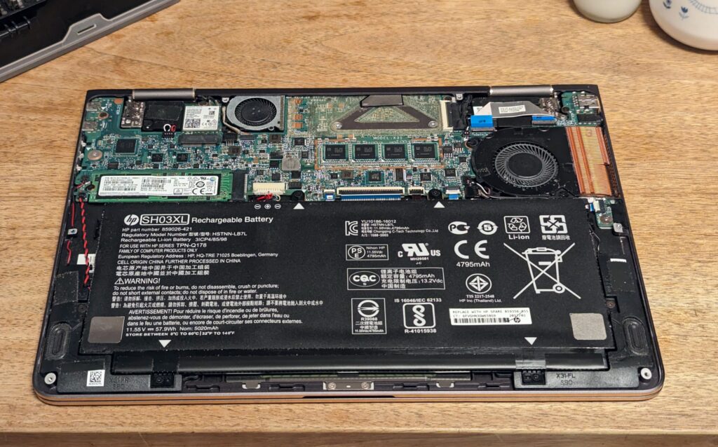 そこで、**「SSDを一度抜いて、ホコリを飛ばして、もう一度挿す!それでダメなら諦めよう!」**と、最後の望みをかけてPCの分解に挑みました。