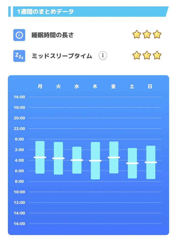 入眠と起床の中間地点がほぼ一直線となっています。