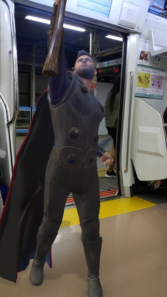 当時はTikTokやインスタストーリーが本格的にブームとなった時期で、各メーカーが画像へのスタンプ機能や3D絵文字を用いて、エンタメの方向に意識を向けていました。そんな中Pixel 3のカメラに搭載されていたのがプレイグラウンド機能。**ARで様々なキャラを表示させて、一緒に写真を撮ることが出来る機能です。**ハローキティとかアイアンマンとかが用意されていて、最終的にチャイルディッシュ・ガンビーノ(This is Americaの人)さんをはじめとする実在の人物まで選べた気がします。