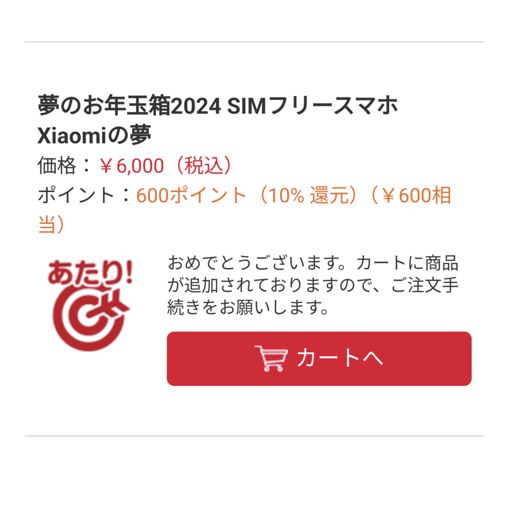 ヨドバシカメラ夢のお年玉箱SIMフリースマホXiaomi の夢に当選してしまったしたからです。申し込んだ理由は価格です。なんとお値段¥6,000。