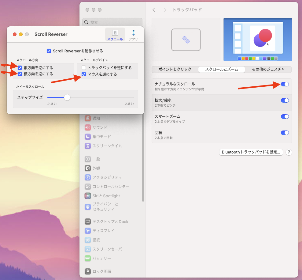 - ✅ トラックパッドのスクロールは「ナチュラル」のまま維持できる