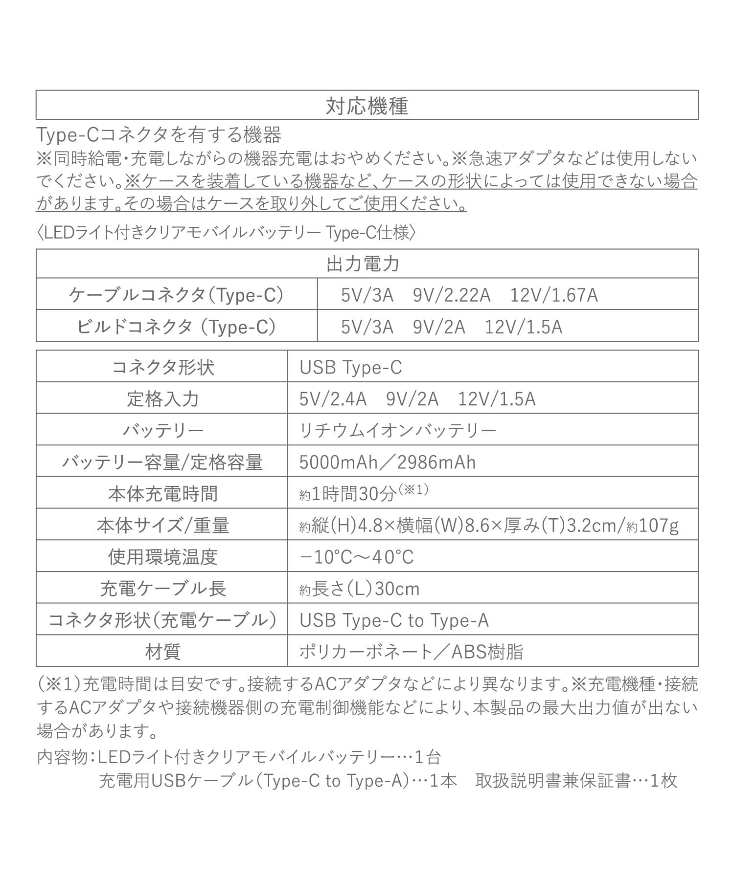 3COINS LEDライト付きクリアモバイルバッテリーの概要