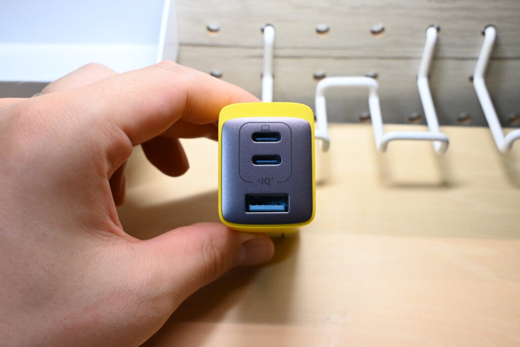 しかも、USB-Cポートを2つ、USB-Aポートを1つ搭載しているので、3台のデバイスを同時に充電できるのも嬉しいポイント。スマートフォンとタブレット、ワイヤレスイヤホンを同時に充電することも可能です。