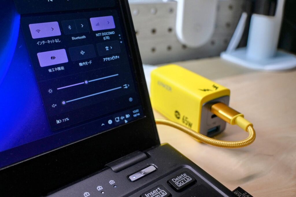 特に、USB-Cポート1つでノートPCを充電する場合、65W出力なので、PCを使用しながらでもバッテリー残量を気にせず作業できました。これは本当に助かります!